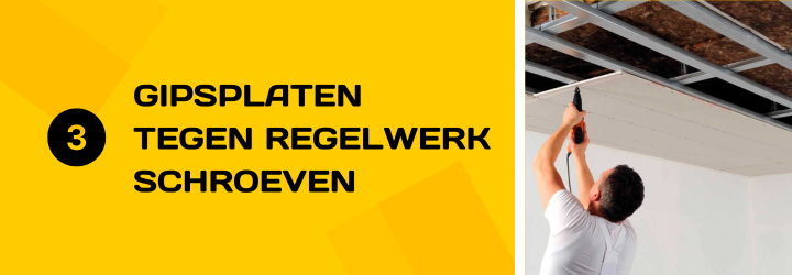 Stap 3 - Gipsplaten tegen het regelwerk schroeven