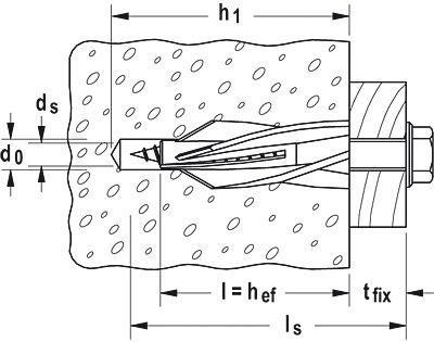 Pluglengte = mininimale verankeringsdiepte | l = hef | 50 | mm |