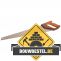 Leg nu een eerste laag stenen (zonder specie) tussen de metselprofielen, met steeds 1 cm tussenruimte (voegdikte). Neem dit patroon over op een lange lat (de koppenlat). Deze koppenlat gaat vanaf nu dienen als horizontaal liniaal voor het metselwerk.