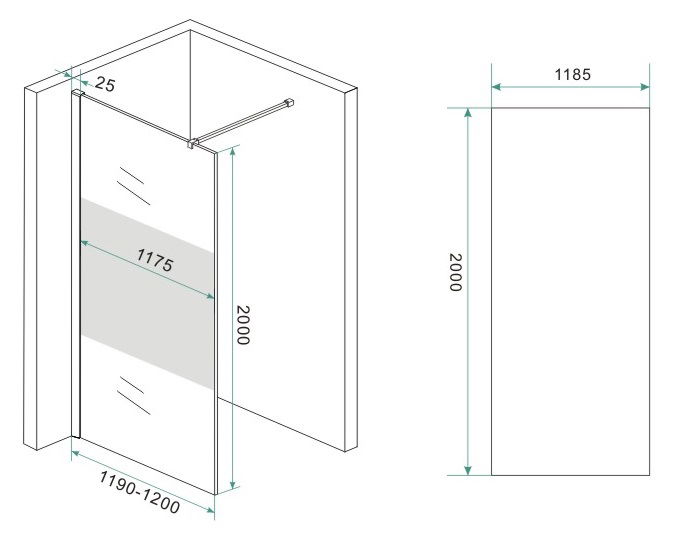 De douchewand moet worden ondersteunt met een profielset (niet inbegrepen). U stelt zelf uw complete inloopdouche samen met een keuze uit een chromen, geborsteld stalen en mat zwarte profielset. De stabilisatiestang is in te korten naar gewenste maat. De douchewand heeft geen vloerbevestiging, waardoor u de wand direct na het plaatsen transparant kunt afkitten.